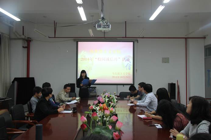 为了进一步提高学生的诚信意识,营造诚实守信的良好氛围。马克思主义学院全体同学及学院领导于10月29日晚在学院会议室举行“校园诚信月”主题活动。