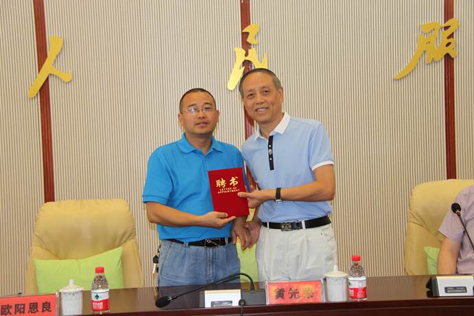 在报告会之前,贵州师范大学马克思主义学院欧阳恩良院长为黄先荣颁发了聘请其为全国高校思想政治理论课教师社会实践研修基地(贵州师范大学)特聘教授的荣誉证书。