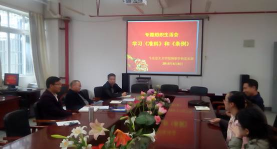 为进一步增进党员的组织纪律性和提高党员素质,增强基层党组织的凝聚力和战斗力,马克思主义学院纲要学科党支部4月8日在学院会议室召开了专题组织生活会,会议主题是“学习《准则》和《条例》”。