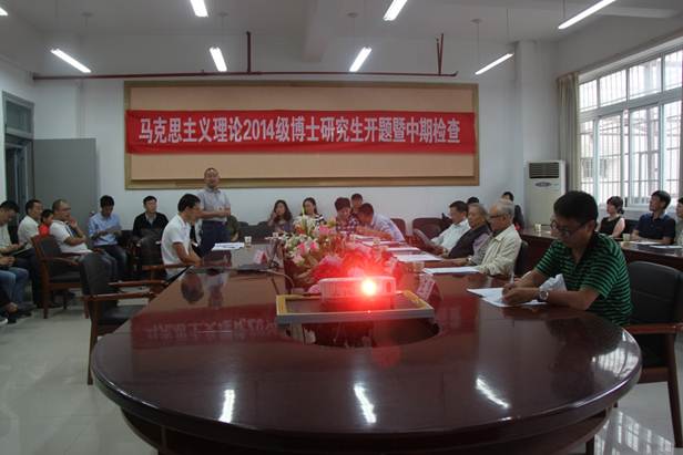 9月25日上午8:30,马克思主义理论2014级博士研究生毕业论文开题报告会暨中期检查在马克思主义学院会议室举行。中国社科院学部委员靳辉明教授、武汉大学梅荣政教授、上海交通大学陈锡喜教授莅临指导;校党委书记韩卉教授、副校长蔡永生教授、副校长赵守盈教授及博士点所有博士生导师、学校研究生院主要领导出席;学院马克思主义理论2014、2015、2016级全体博士研究生参加。报告会由马克思主义学院院长欧阳恩良教授主持。