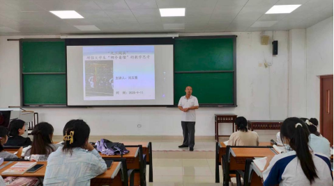 9月11日下午,马克思主义学院在学校东校区公共教学楼3401教室组织开展以“深入学习贯彻习近平总书记在纪念中国人民抗日战争暨世界反法西斯战争胜利80周年大会上重要讲话精神”为主题的教学研讨活动。此次教研活动由马克思主义学院“思贤名师”朱彦瑾副教授、刘五景副教授两位老师担任主讲人,其中,朱彦瑾兼任主持人,教师教育学院23级物理学、生物科学、地理科学专业优师班的120余名本科生参加。